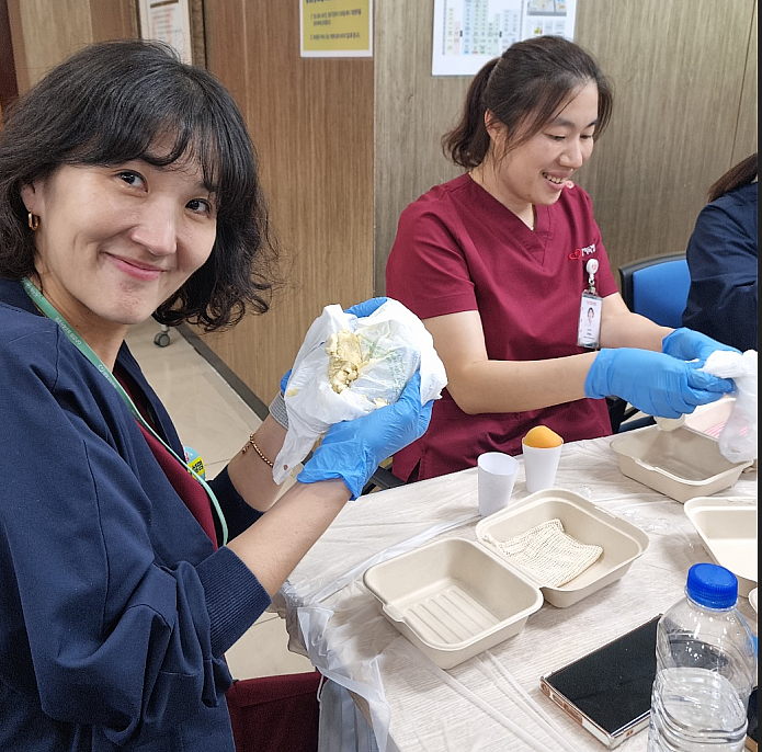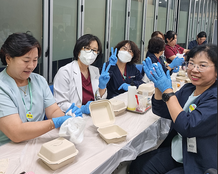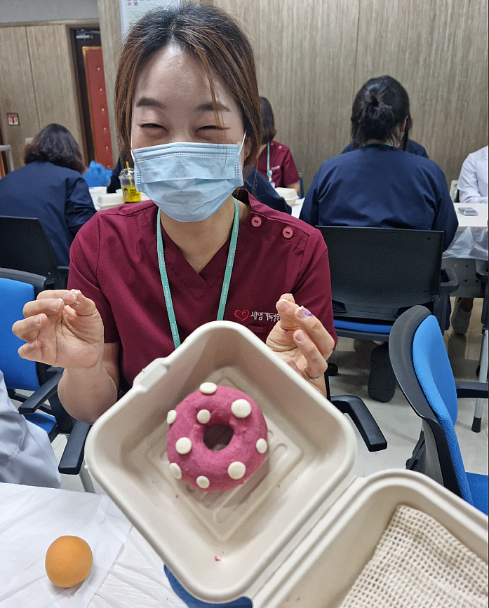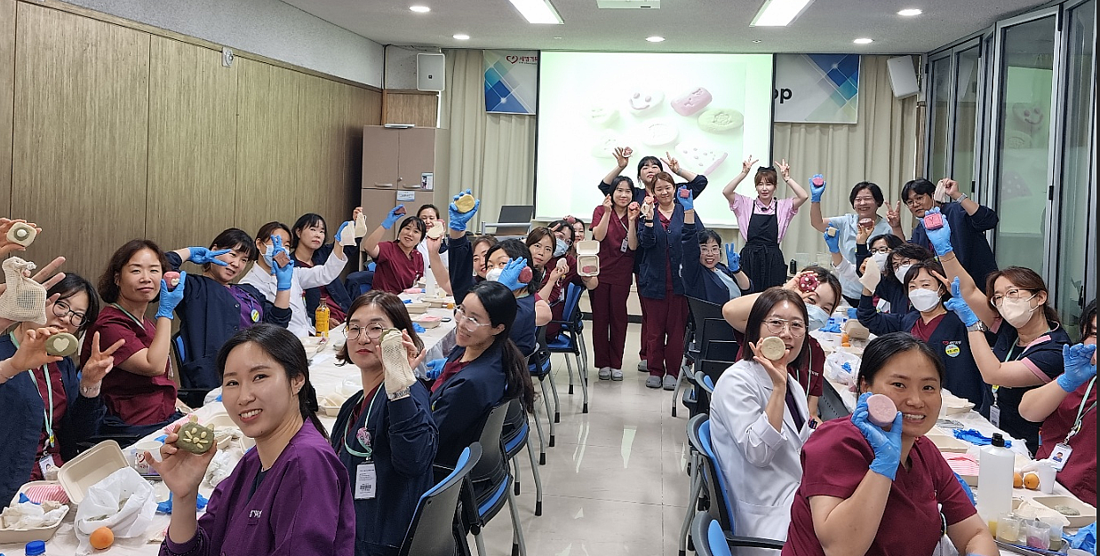 참석한 37명의 간호부 부서장과 수간호사들은 강의를 마치고 짧지만 천연비누 만들기를 통해 각자 원하는 비누 모양을 예쁘게 개성에 맞게 다듬고, 만들어진 서로의 작품을 감상하면서 잠시나마 웃으면서 집중할 수 있는 힐링의 시간을 가졌습니다.