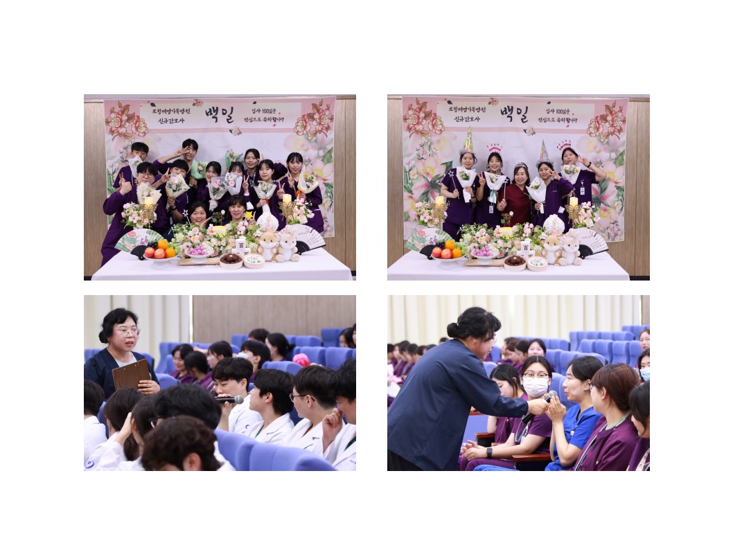 선배 간호사 축하 메시지와 신규 간호사들이 준비한 ‘100일 동안의 병원생활’을 주제로 소감을 발표하는 시간을 가졌습니다.