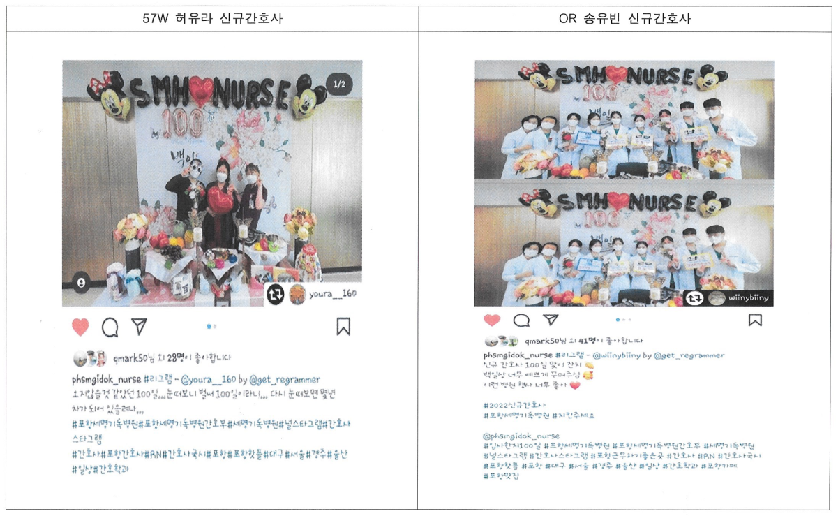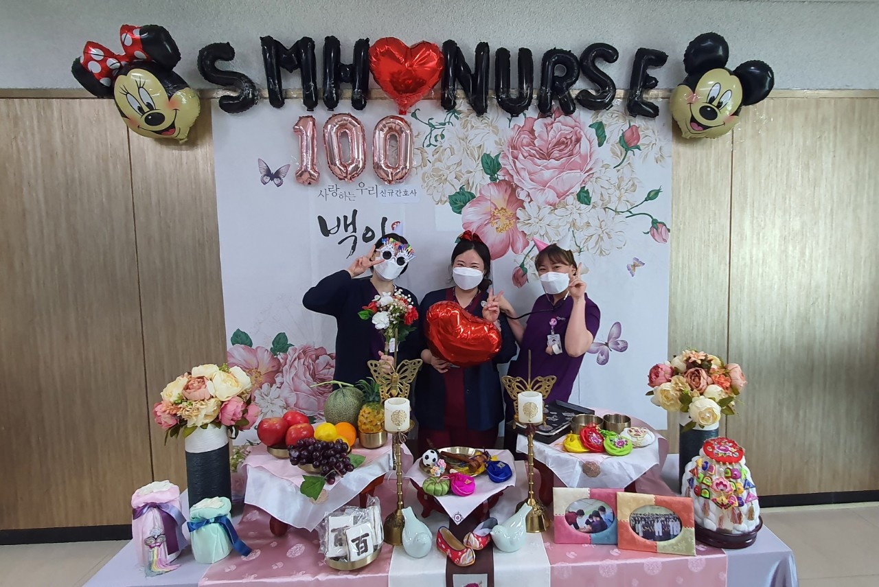 또한 워크샵 행사 중간중간 간호부 관리자 및 각 병동의 선배들이 신규간호사들을 응원하러 와서 백일상을 차려놓은 포토존에서 사진도 촬영하고, 인스타에 업로드를 한