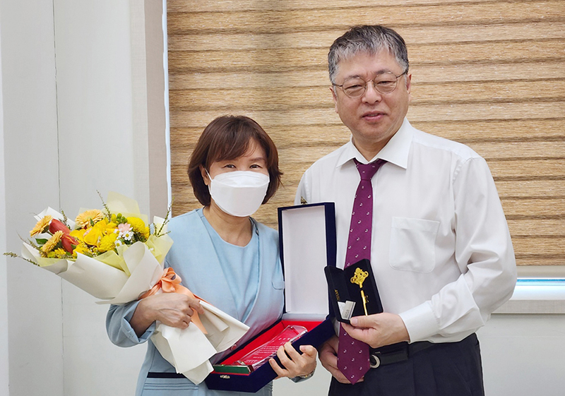 조촐한 행사를 마련해 공로패와 행운의 열쇠를 전달했습니다.