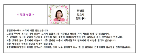 응급상황에서 생명을 구한 자랑스런 95병동 김빛나라간호사